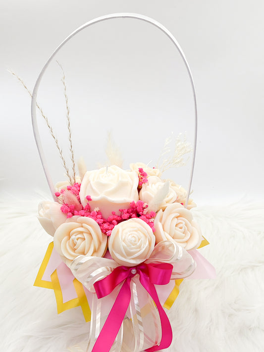 Scented Candle Flower Basket – 20 Rose Candle Bouquet