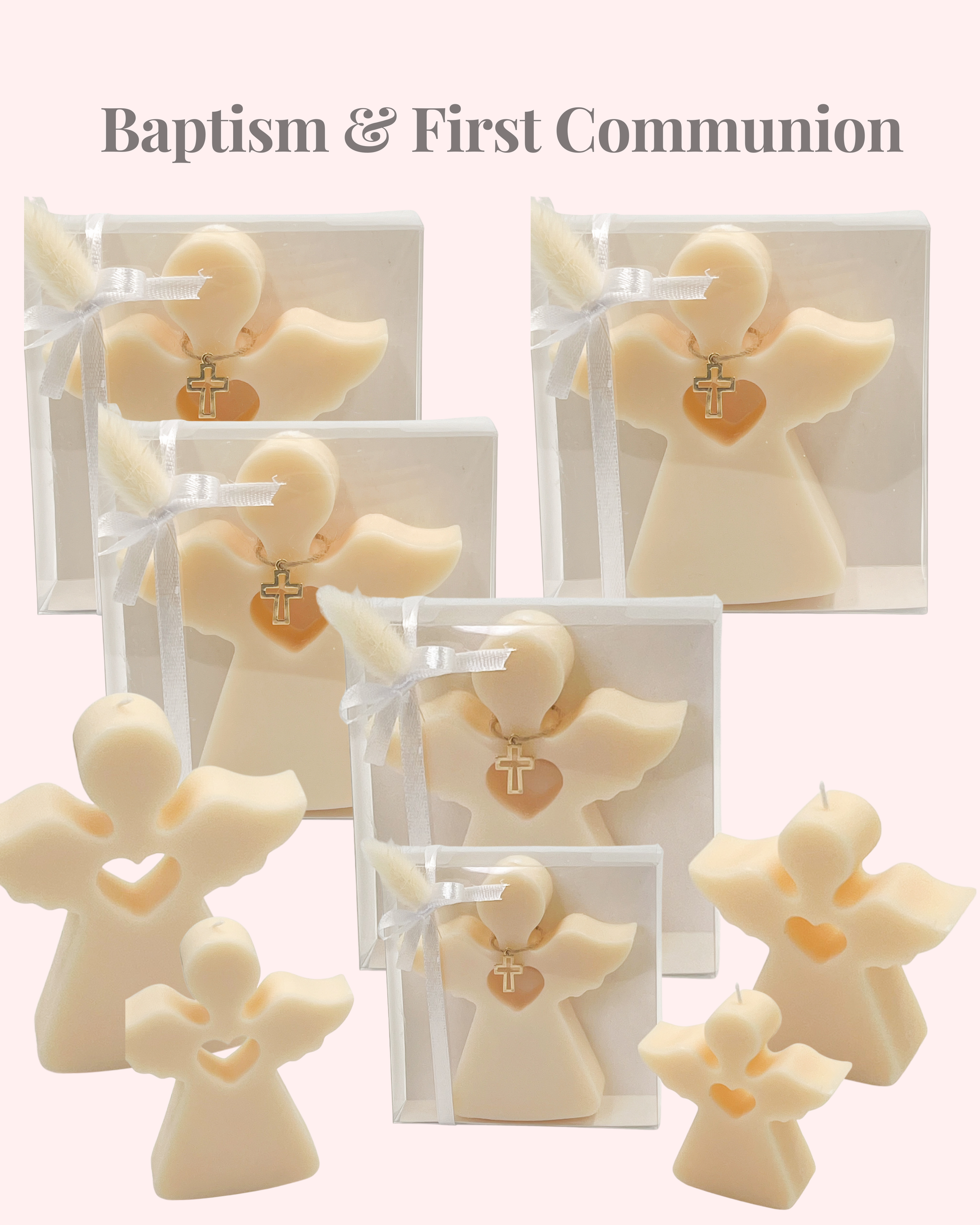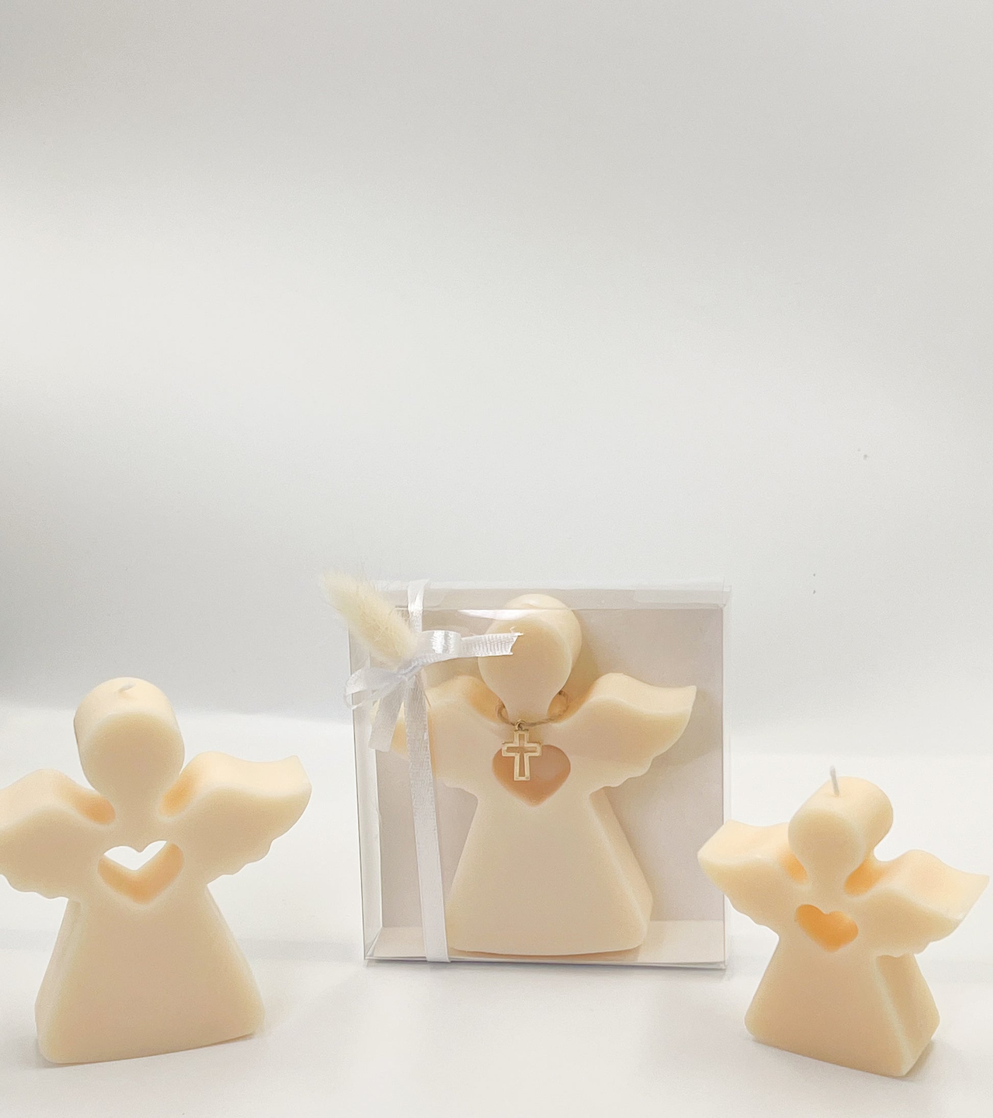 Vela decorativa em formato de anjo, perfeita para lembrancinhas de festas religiosas.