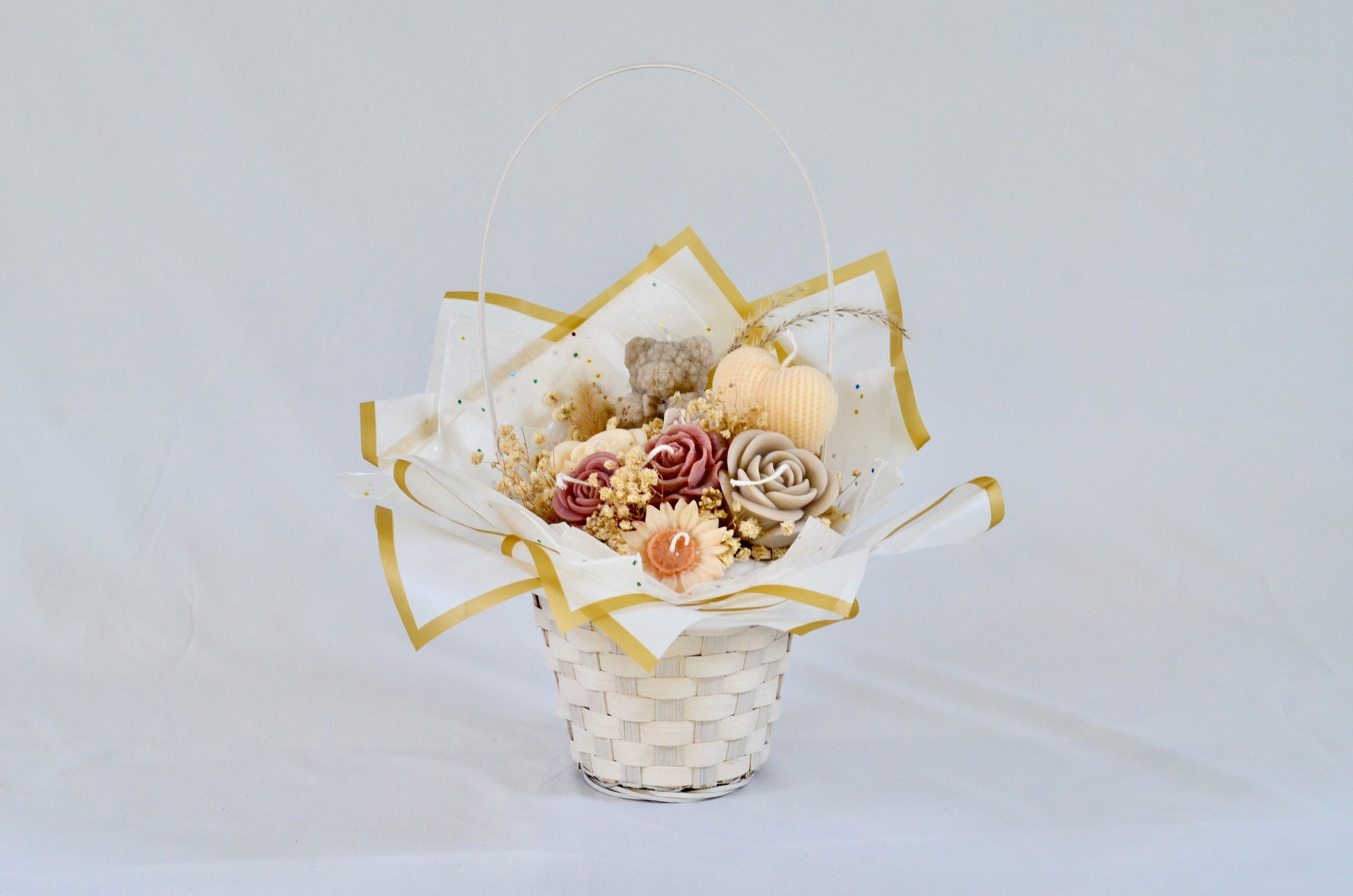 Transform any space with this elegant decorative basket, full of charm, fragrance, and style. Lovingly handcrafted, this unique piece combines the beauty of flowers with the warmth of candles, all wrapped in premium packaging — ready to gift.